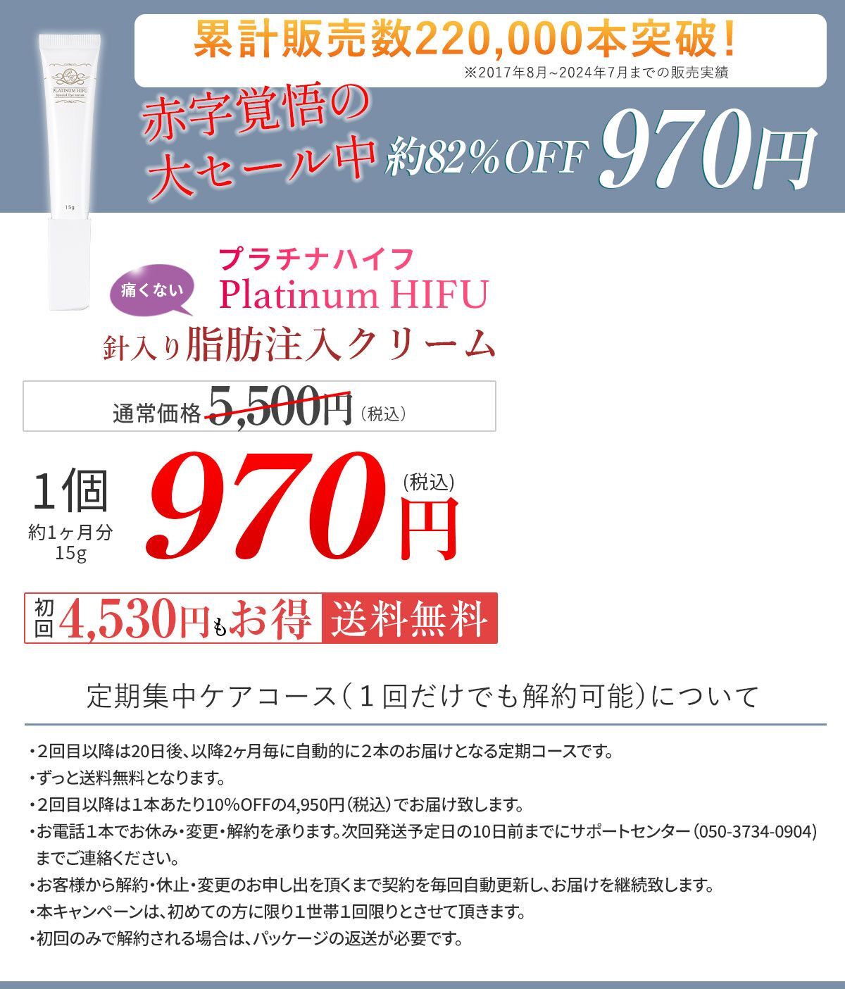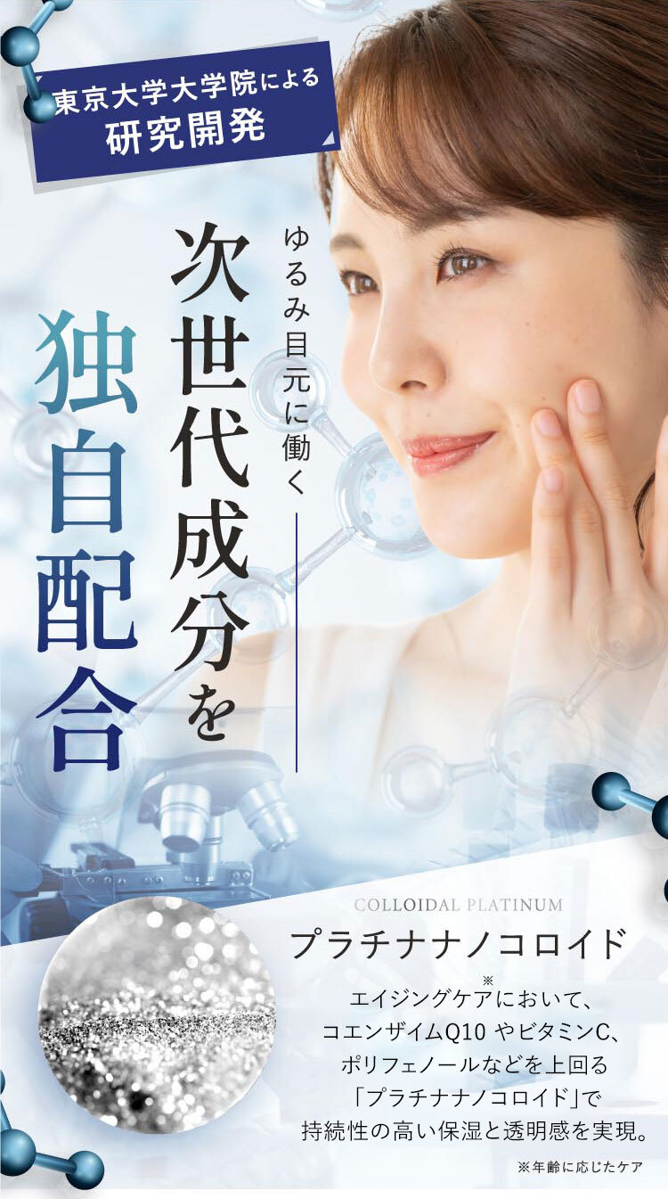 水、パルミチン酸エチルヘキシル、イソペンチルジオール、白金、ヒアルロン酸Na、加水分解ヒアルロン酸Na、ヒアルロン酸クロスポリマー-2-Na アセチルヒアルロン酸Na、水溶性コラーゲン、プラセンタエキス、パルミチン酸レチノール、セラミドAP、セラミドNP、セラミドEOP、レチノイン酸トコフェリル セタノール、PVP(アクリロイルジメチルタウリンアンモニウム/VP)コポリマー、ステアリン酸グリセリル(SE)、カプリル酸グリセリル、エチルヘキシルグリセリン、BG ホホバ種子油、マカデミア種子油、グリセリン、ラウロイルラクチレートNa、トリ(カプリル酸/カプリン酸)グリセリル、ペンチレングリコール、カルボマー、コレステロール フィトスフィンゴシン、ポリソルベート20、キサンタンガム、ゲットウ葉エキス、アセチルテトラペプチド-5、トコフェロール、ユズ果実エキス、パルミトイルトリペプチド-1 パルミトイルテトラペプチド-7、セルロースガム、銀、炭酸水素Na、t-ブタノール、乳酸Na、フェノキシエタノール